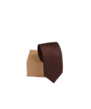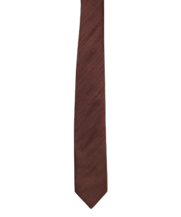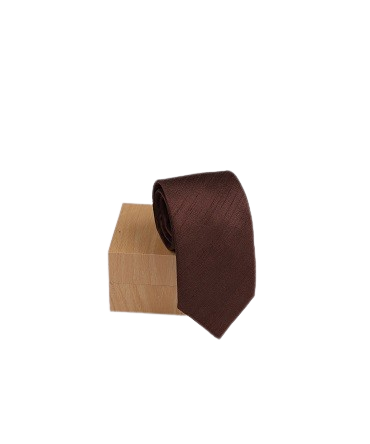 Crafted from a blend of raw silk, cotton, and poly silk, this tie combines the luxurious feel of silk with the durability and versatility of other fibers. Dyed in a rich dark brown hue, it exudes professionalism and sophistication, making it the perfect choice for formal wear in any setting.